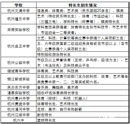 杭州文瀾、建蘭、采荷、公益等特長生情況表