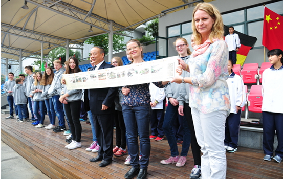 在校期間,托梅恩學(xué)校來訪師生參觀了學(xué)校的教育教學(xué)設(shè)施, 并到結(jié)對學(xué)生的班級聽課學(xué)習(xí)、交流。他們還與我校師生一同參加了第53屆田徑運動會入場式和各項比賽。德國師生游覽杭州名勝,了解杭州的歷史文化,并入住我校結(jié)對學(xué)生家中體驗中國學(xué)生家庭生活。