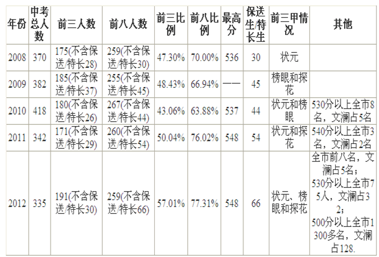 《杭州超限教育中心李林2015年10月29日訊》杭州文瀾中學教育成績一直深受學生家長認可,該學校歷年也一方面主抓學校教育環(huán)境;另一方面也重點關(guān)注學生綜合成績的提升。文瀾中學在歷年杭州中考中,取得成績令人羨慕,現(xiàn)截取2008-2012年優(yōu)秀學子考試成績統(tǒng)計數(shù)據(jù),分享如下: