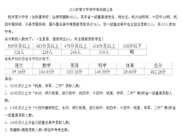 《杭州超限教育中心李林2015年11月04日訊》杭州育才中學(xué)歷年都以優(yōu)秀的學(xué)生成績回饋廣大家長的信任寄托。不僅 03、04、05、06四年連續(xù)中考重高上線率的第一名,成為杭城第一所連續(xù)四年整體發(fā)揮最為出色的學(xué)校。以后繼續(xù)保持這種教學(xué)和成績優(yōu)勢,現(xiàn)截取育才中學(xué)2013年中考成績分布情況,分享如下: