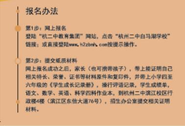 《杭州超限教育中心李林2015年11月06日訊》作為小升初專業(yè)培訓(xùn)機構(gòu),全面整理杭州重點初中學(xué)校最新前言招生信息,為即將到來的2016年小升初家長提供參考指南,對于小升初自主招生環(huán)節(jié)上關(guān)鍵是面談環(huán)節(jié),希望家長引起重視。杭州二中白馬湖學(xué)校報名流程信息 :