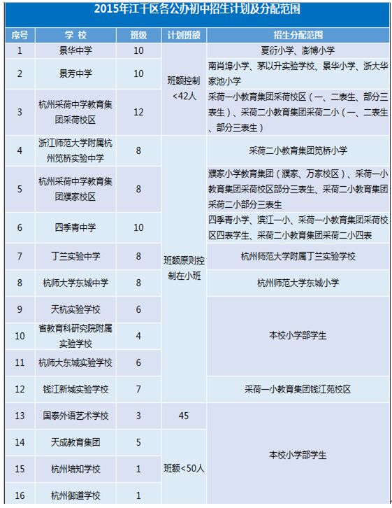 2015年杭州江干區(qū)公辦初中招生計(jì)劃及分配范圍