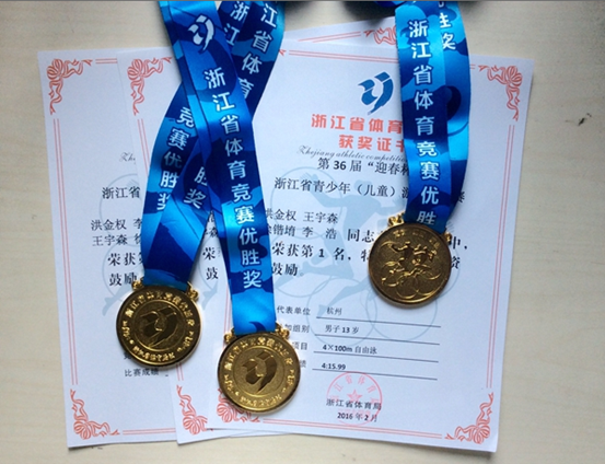《杭州超限教育中心李林2016年3月08日訊》英特外國語學校初一1班王宇森同學參加了浙江省第36屆“迎春杯”青少年游泳錦標賽,在400米混合接力、4*100米自由泳接力和4*50米自由泳接力三項比賽中發(fā)揮出色,勇奪三枚金牌。
