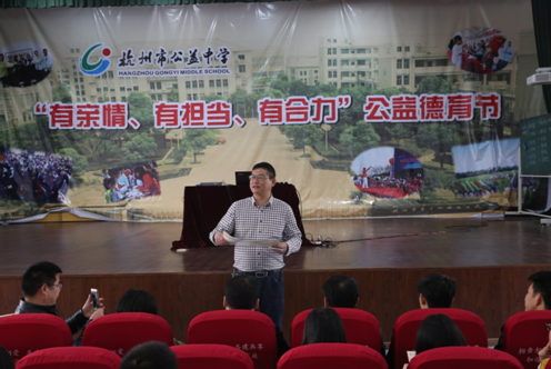 會上,杭州市陽光男教師,公益中學(xué)初一(8)班班主任王曉巍老師以《教師人格魅力淺談》切入話